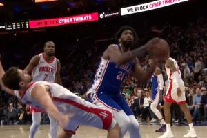 GIF-恩比德進(jìn)攻拱飛申京 烏度卡抱怨吃T