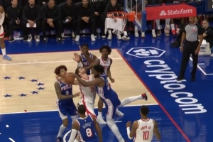 GIF-申京造恩比德犯規(guī) 76人挑戰(zhàn)成功