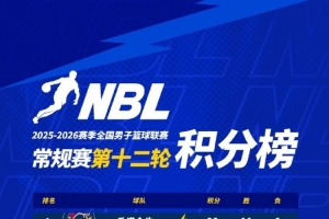 【積分榜】2025-2026賽季NBL常規(guī)賽積分榜(截至第十二輪結(jié)束)