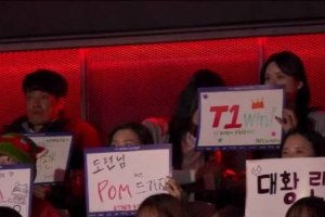 體育資訊1月23日訊 T1對陣KT現(xiàn)場:peyz爸爸和姐姐觀賽 并為T1加油。