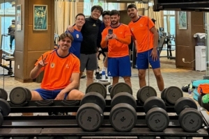 體育資訊1月23日訊 今日,泰山隊(duì)外援卡扎伊什維利更新社媒,曬出和隊(duì)友一同在健身房訓(xùn)練的照片??死咨T谠u論區(qū)搞怪評論“喵”。