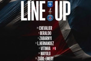 巴黎圣日耳曼首發(fā):30-舍瓦利耶、4-貝拉爾多、6-扎巴爾尼、21-盧卡斯·埃爾南德斯、17-維蒂尼亞、24-馬尤盧、33-扎伊爾·埃梅里、7-克瓦拉茨赫利亞、9-貢薩洛·拉莫斯、29-巴爾科拉、49-姆巴耶