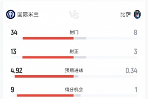 體育資訊1月24日訊 本輪意甲,國(guó)米讓二追六逆轉(zhuǎn)比薩。雙方全場(chǎng)重點(diǎn)數(shù)據(jù)對(duì)比如下↓(主隊(duì)國(guó)米在前)