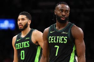 此役凱爾特人球星杰倫·布朗出場(chǎng)45分鐘27投9中,三分10中4、罰球10中5拿到27分10籃板12助攻1搶斷,正負(fù)值+11。