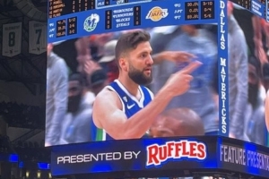 獨(dú)行俠迎戰(zhàn)湖人,首節(jié)暫停時(shí)大屏幕播放短片,致敬舊將克萊伯。