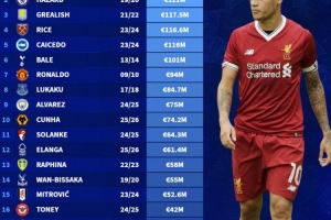 體育資訊7月18日訊 德轉(zhuǎn)盤點了英超目前20支球隊隊史賣人最貴榜單,其中庫蒂尼奧、阿扎爾等球員在列,具體如下: