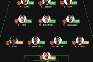 前鋒:庫尼亞(曼聯(lián),7.02分)、姆伯莫(曼聯(lián),7.02分)、薩卡(阿森納,7.27分)