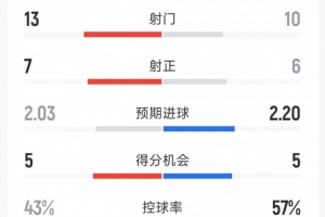 體育資訊1月26日訊 在本輪英超,切爾西3-1擊敗水晶宮,以下為雙方全場(chǎng)數(shù)據(jù)對(duì)比: