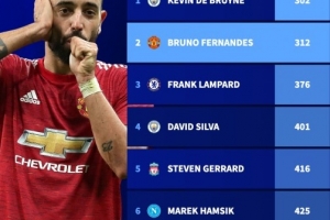 體育資訊1月26日訊 英超第23輪比賽,曼聯(lián)在客場(chǎng)挑戰(zhàn)阿森納。本場(chǎng)比賽,B費(fèi)助攻多爾古打進(jìn)反超比分的進(jìn)球,這讓他在英超中直接參與進(jìn)球數(shù)達(dá)到200球(103球,97助攻)。德國(guó)轉(zhuǎn)會(huì)市場(chǎng)盤點(diǎn)了新世紀(jì)五大聯(lián)賽最快直接參與200球中場(chǎng)球員,B費(fèi)312場(chǎng)位居次席,僅次于302場(chǎng)的德布勞內(nèi)。