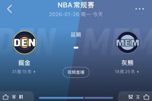 體育資訊01月26日訊 ESPN名記Shams報道,原定于今日凌晨04:30分進行的NBA常規(guī)賽,灰熊主場對陣掘金的比賽,因天氣原因延期進行。