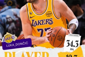 體育資訊1月27日訊 今日NBA官方宣布,湖人球星盧卡·東契奇當(dāng)選本賽季第14周西部周最佳球員。