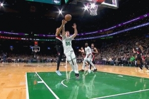 GIF-呂佩爾與謝爾曼爭(zhēng)搶籃板,裁判吹綠軍球,開(kāi)拓者挑戰(zhàn)失敗
