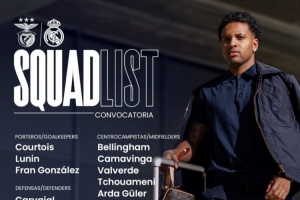 體育資訊1月27日訊 北京時(shí)間1月29日凌晨4:00,歐冠聯(lián)賽階段第8輪,皇馬將客戰(zhàn)本菲卡。賽前,皇馬官方公布本場(chǎng)比賽大名單,維尼修斯和姆巴佩領(lǐng)銜鋒線,貝林厄姆坐鎮(zhèn)中場(chǎng)。