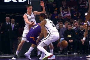 GIF-狄龍搶球打到克拉克斯頓下體