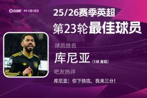 2025-2026賽季英超火熱進(jìn)行中,體育資訊和咪咕體育聯(lián)合發(fā)起每輪英超最佳球員評(píng)選活動(dòng)!第23輪評(píng)選結(jié)果已經(jīng)出爐,曼聯(lián)前鋒庫(kù)尼亞當(dāng)選!