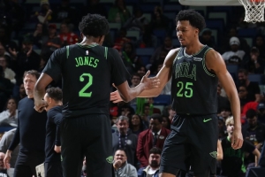 本場(chǎng)比賽,鵜鶘兩位鋒線墨菲和瓊斯進(jìn)攻端都毫無狀態(tài),尤其是外線各種機(jī)會(huì)就是投不進(jìn)。墨菲20中3,三分11中1,罰球5中3拿到10分5籃板5助攻3搶斷1蓋帽;瓊斯則是12中3,三分9中1,罰球2中2拿到9分5籃板5助攻2搶斷2蓋帽。