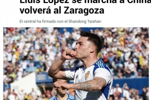 路易斯-洛佩斯這位中衛(wèi)已與山東泰山簽約,且不愿繼續(xù)等待薩拉戈薩俱樂部可能開出的續(xù)約條件。路易斯-洛佩斯在薩拉戈薩的合同已于6月30日到期,而俱樂部始終未明確表態(tài)其去留問題。體育總監(jiān)切馬-因迪亞斯曾公開表示:“是否續(xù)約將取決于轉(zhuǎn)會市場變化”。