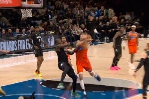 遭遇圍剿!克林根籃下踩線出現(xiàn)失誤 隨后被羅威換下