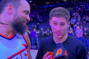 賽后采訪,吉萊斯皮打斷了狄龍的場邊采訪,同時道:“現(xiàn)在告訴所有人,我們隊里有兩個全明星。這個家伙是全明星——把你們手機都掏出來,開始投吧?!?/p>