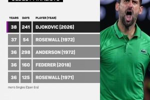 德約科維奇成為公開賽時代以來澳網(wǎng)最年長的男單決賽選手,超越了肯·羅斯沃爾在1972年創(chuàng)下的前紀(jì)錄。