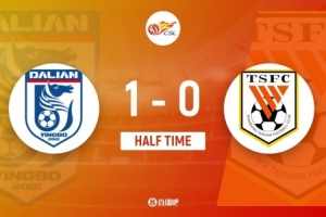 上半場比賽結(jié)束,大連英博1-0山東泰山。