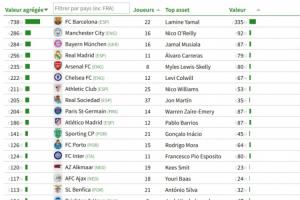 體育資訊01月31日訊 CIES足球天文臺更新了最新的球隊青訓(xùn)球員身價榜,目前巴薩以7.38億歐的球員總身價高居榜首,曼城、拜仁分列二三。