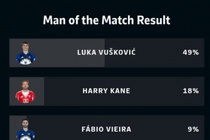本場比賽漢堡球員武什科維奇打進扳平進球,賽后以49%的得票率當選本場最佳球員,凱恩以18%排名次席。