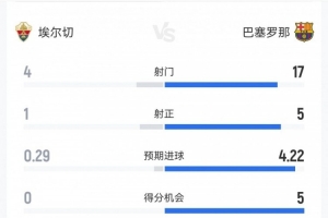 體育資訊2月1日訊 本輪西甲,巴薩半場2-1領(lǐng)先埃爾切。雙方半場重點數(shù)據(jù)對比如下↓(主隊埃爾切在前)