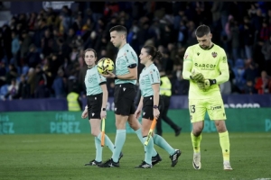 體育資訊2月1日訊 西甲第22輪比賽,萊萬特在主場和馬競互交白卷。本場比賽,兩名女性裁判出現(xiàn)在裁判團隊中,兩人均是擔(dān)任助理裁判。