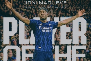 體育資訊2月1日訊 阿森納客場(chǎng)4-0擊敗利茲聯(lián),俱樂(lè)部官方消息馬杜埃凱當(dāng)選本場(chǎng)比賽最佳球員。