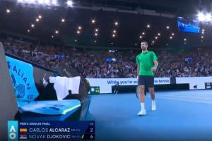 第一盤比賽,雙方上來全部保發(fā)。德約第二個發(fā)球局保發(fā)后,破掉阿爾卡拉斯發(fā)球局,局分3-1領(lǐng)先。第5局德約繼續(xù)保發(fā),比分4-1領(lǐng)先。