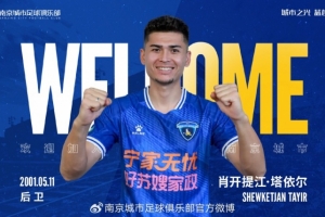 歡迎肖開提江-塔依爾重回南京城市大家庭,期待他在賽場(chǎng)上的精彩發(fā)揮!