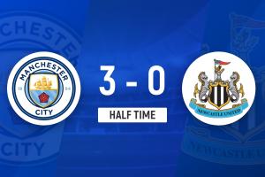 半場結(jié)束,曼城暫3-0紐卡斯爾聯(lián)。