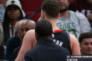 GIF-申京被隊友推著離場,自己還在喋喋不休!