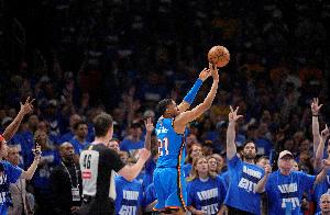 雷霆球員維金斯本場先發(fā)出戰(zhàn)在攻防兩端有著全面發(fā)揮,進(jìn)攻上他手感不錯(cuò)效率很高,防守更是相當(dāng)給力多次搶斷。