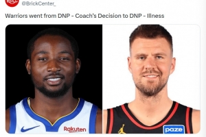 美媒BrickCenter調(diào)侃道,勇士DNP的原因從教練決定→生病。