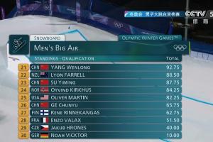體育資訊02月06日訊 冬奧會單板滑雪男子大跳臺資格賽第二輪結(jié)束,蘇翊鳴、楊文龍第二跳均拿出精彩表現(xiàn),葛春宇兩輪過后已經(jīng)無緣晉級。