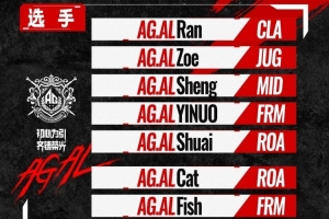 體育資訊7月20日訊 AG發(fā)布EWC大名單:游走大帥/Cat,發(fā)育路一諾/小俞,其余位置無替補(bǔ)