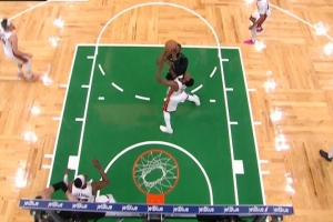 GIF-杰倫·布朗肘到維金斯打板命中被吹進(jìn)攻犯規(guī),綠軍挑戰(zhàn)失敗