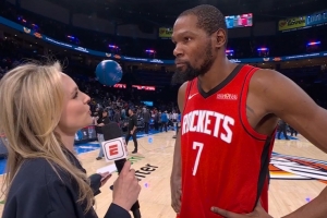 體育資訊2月8日訊 NBA常規(guī)賽,火箭在客場以112-106擊敗雷霆。賽后杜蘭特接受了采訪。