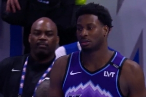 上半場(chǎng),爵士新援小賈倫·杰克遜高效發(fā)揮,出場(chǎng)15分鐘13投7中,三分3中1、罰球2中2拿到17分2籃板2助攻1搶斷,正負(fù)值+10。