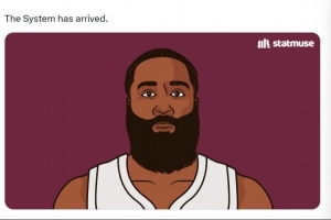 賽后,美媒StatMuse曬出了哈登數(shù)據(jù),并寫道:“體系已經(jīng)到來?!?/p>