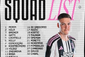 體育資訊2月8日訊 北京時(shí)間2月9日凌晨3:45,2025-26賽季意甲聯(lián)賽第24輪,尤文圖斯將在主場(chǎng)迎戰(zhàn)拉齊奧。賽前,尤文官方公布本場(chǎng)比賽球隊(duì)大名單,伊爾迪茲領(lǐng)銜鋒線,博加在列。