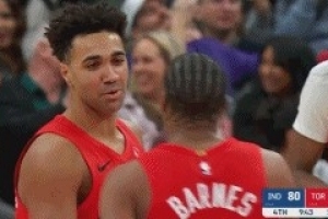 曾經(jīng)并肩作戰(zhàn)!賽后西亞卡姆和老隊友斯科蒂·巴恩斯擁抱熱聊