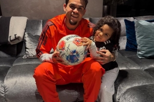 路易斯·迪亞斯帶走了比賽用球,他曬出了自己和女兒一起捧著球的合照。