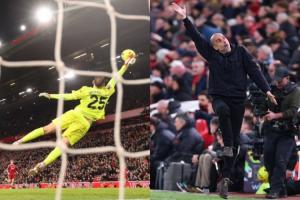 體育資訊02月09日訊 英超第25輪,曼城2-1逆轉(zhuǎn)絕殺利物浦。比賽補時階段,麥卡利斯特的凌空遠射發(fā)生折射變線,多納魯馬貢獻神撲將球托出,力保球門不失!