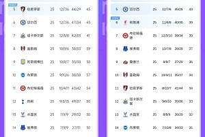 曼聯(lián):+15,第15→第4