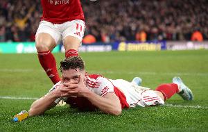一同參與節(jié)目的杰伊·博斯羅伊德說(shuō)道:“我覺(jué)得這是紅牌。動(dòng)作很危險(xiǎn),他飛鏟出去、完全失控、抬腳過(guò)高。我覺(jué)得正因?yàn)榧s凱雷斯把球打進(jìn)了,這個(gè)動(dòng)作才沒(méi)被深究。要是他沒(méi)打進(jìn),我覺(jué)得他肯定會(huì)吃到紅牌?!?/p>