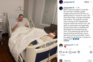 體育資訊2月10日訊 格拉利什更新社媒動態(tài),確認(rèn)成功完成手術(shù)。