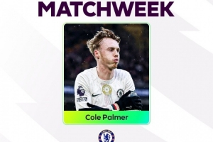 英超第25輪比賽,帕爾默打進3球,幫助切爾西客場3-1擊敗狼隊,他當選本輪英超最佳球員。